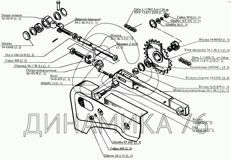 Перечень комплектующих от Привод мотовила форсированный на CK-5М-1 «Нива»