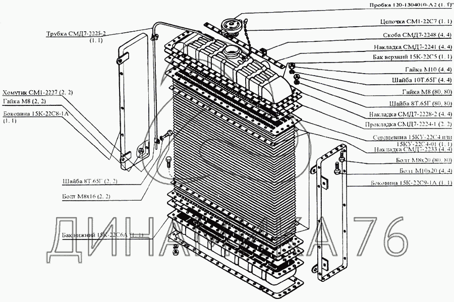Перечень комплектующих от Радиатор на CK-5М-1 «Нива»