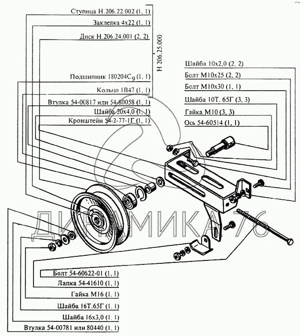 Перечень комплектующих от Шкив натяжной на CK-5М-1 «Нива»