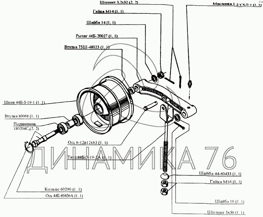 Перечень комплектующих от Шкив натяжной на CK-5М-1 «Нива»