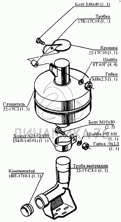 Перечень комплектующих от Труба выхлопная на CK-5М-1 «Нива»