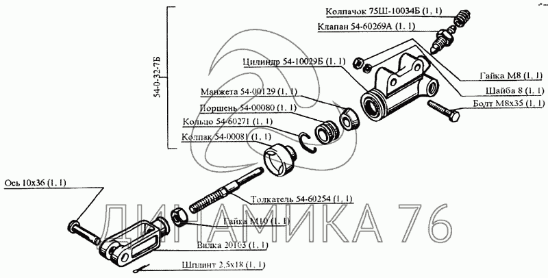 Перечень комплектующих от Цилиндр привода включения сцепления на CK-5М-1 «Нива»