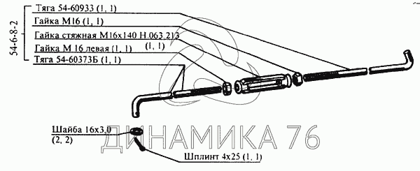 54-6-8-2 54-6-8В 54-60373Б 54-60933 Гайка М16 Гайка М16 левая Н.063.213 Шайба 16х3,0 Шплинт 4х25