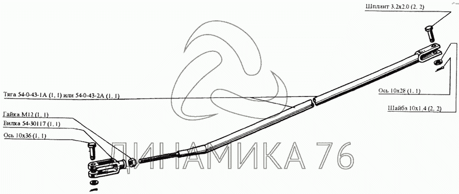 54-0-43-1А 54-0-43-2А 54-0-43Г 54-0-43Г-01 54-30117 Гайка М12 Ось 10х28 Ось 10х36 Шайба 10х1,4 Шплинт 3,2х2,0