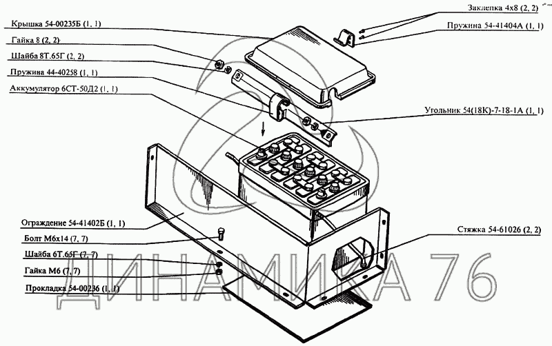 Перечень комплектующих от Установка аккумулятора на CK-5М-1 «Нива»