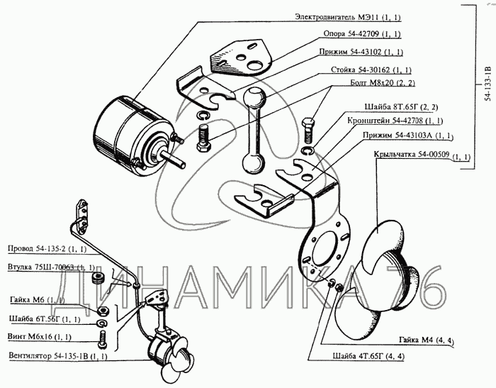 Перечень комплектующих от Установка вентилятора обдува на CK-5М-1 «Нива»