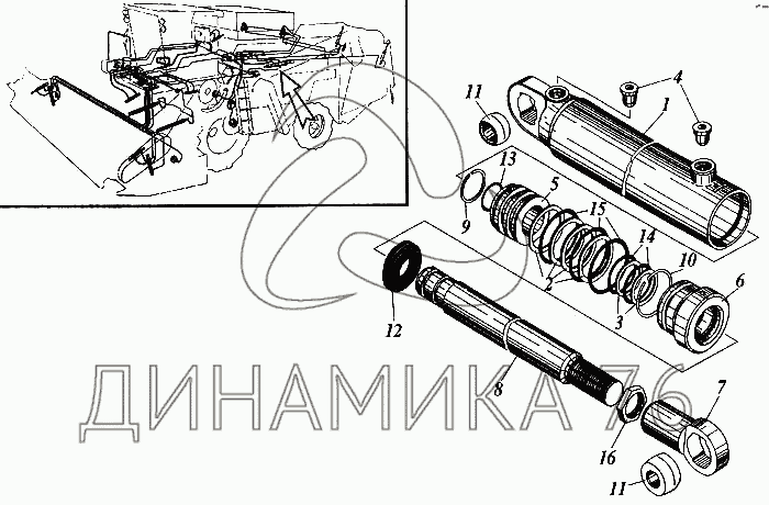 Перечень комплектующих от Гидроцилиндр поворота выгрузного шнека на Дон 1200Б