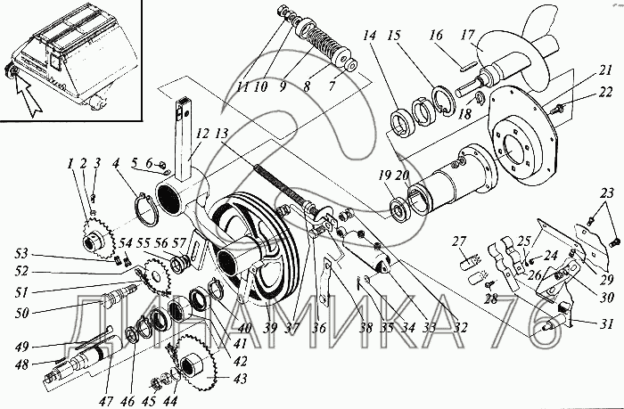Схемы запчастей предназначены для справочных целей! Мы продаем не все запчасти от Привод выгрузного шнека на Дон 1500А, представленные в этом списке.
