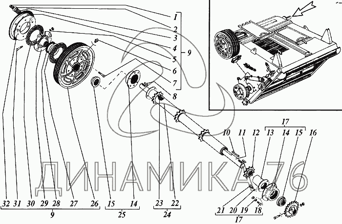 Перечень комплектующих от Вал верхний наклонной камеры на Дон 1500А