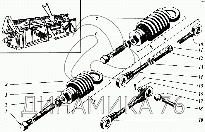 Перечень комплектующих от Компенсатор и подвеска жатки на Дон 1500Б