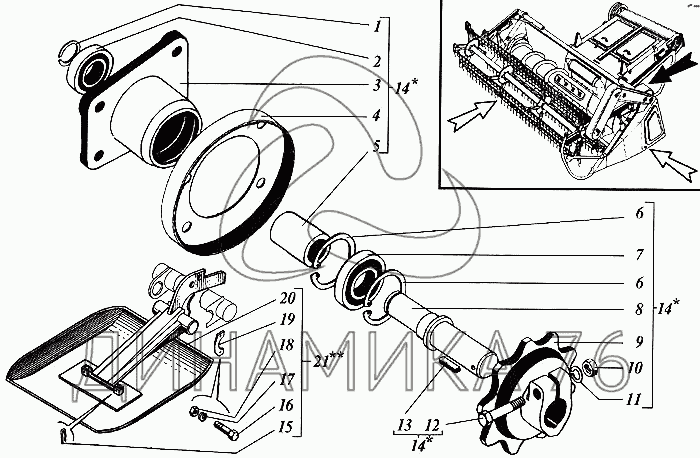 Перечень комплектующих от Контрпривод жатки, башмак жатки на Дон 1500Б