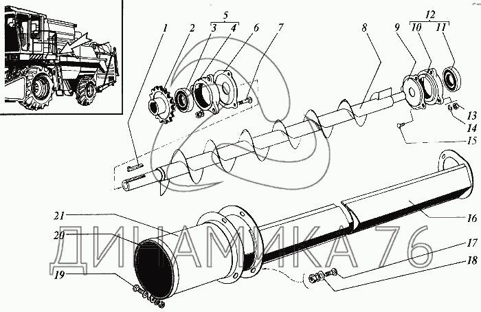 Перечень комплектующих от Шнек распределительный домолачивающего устройства на Дон 1500Б