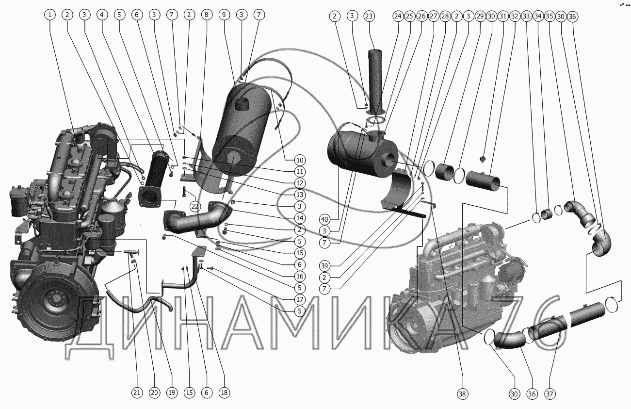 Перечень комплектующих от Двигатель. Трубопровод на Энергосредство ЭС-1