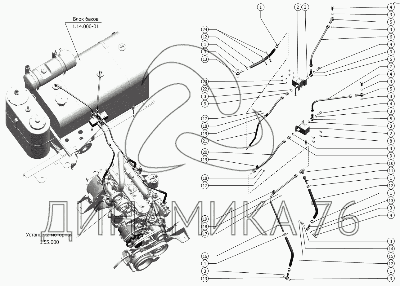 Перечень комплектующих от Коммуникации топливные на Энергосредство ЭС-1