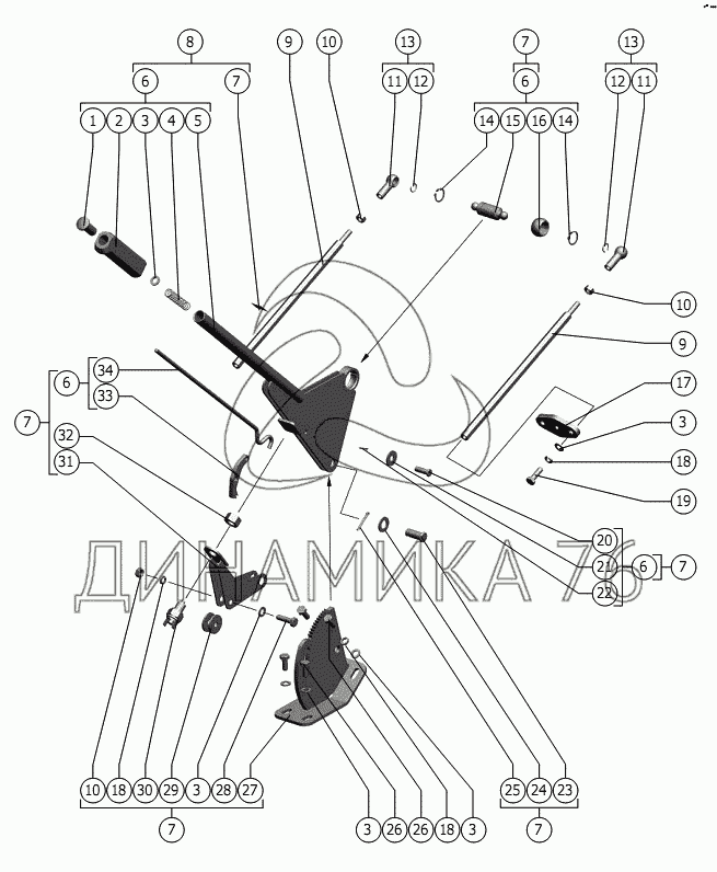 Перечень комплектующих от Рычаг стояночного тормоза на Энергосредство ЭС-1