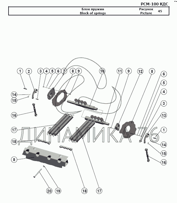 Перечень комплектующих от Блок пружин на РСМ-100 (Дон-680М)