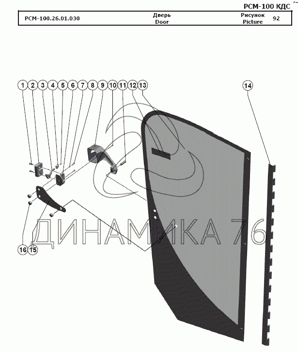 Перечень комплектующих от Дверь на РСМ-100 (Дон-680М)