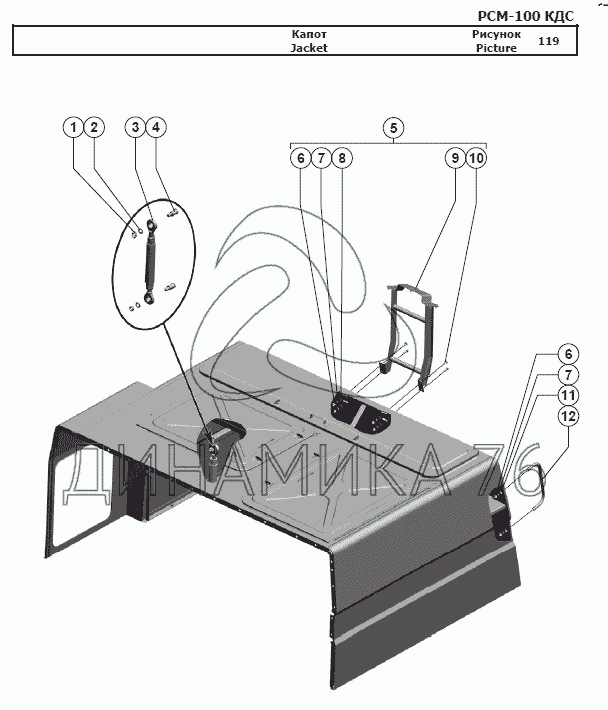 Перечень комплектующих от Капот на РСМ-100 (Дон-680М)