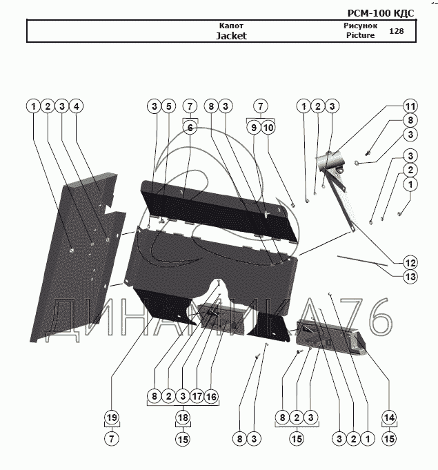 Схемы запчастей предназначены для справочных целей! Мы продаем не все запчасти от Капот на РСМ-100 (Дон-680М), представленные в этом списке.