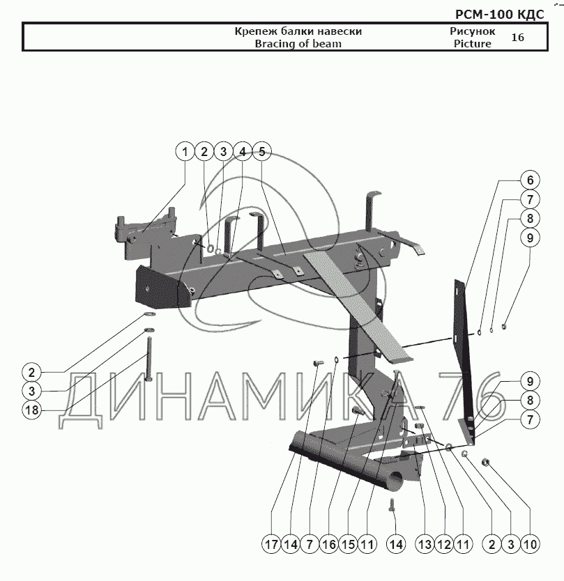 Схемы запчастей предназначены для справочных целей! Мы продаем не все запчасти от Крепеж балки навески на РСМ-100 (Дон-680М), представленные в этом списке.