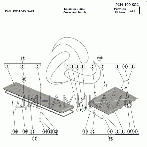 Перечень комплектующих от Крышка и люк на РСМ-100 (Дон-680М)