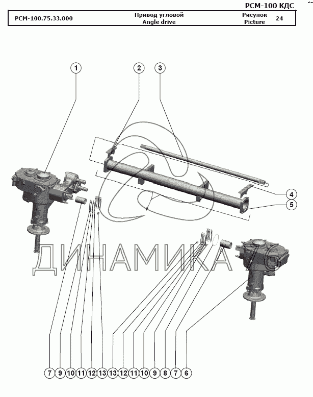 Перечень комплектующих от Привод угловой на РСМ-100 (Дон-680М)