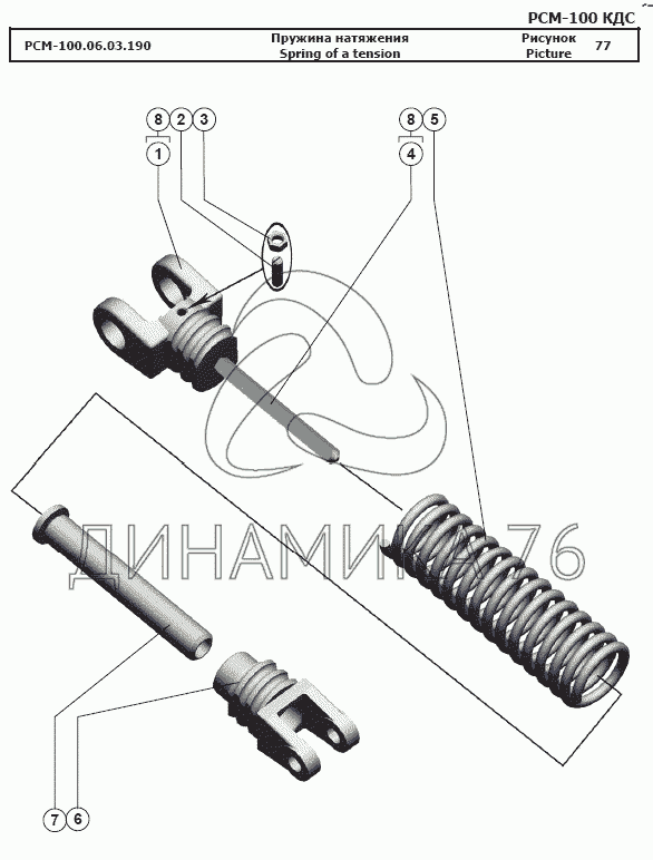 Схемы запчастей предназначены для справочных целей! Мы продаем не все запчасти от Пружина натяжения на РСМ-100 (Дон-680М), представленные в этом списке.