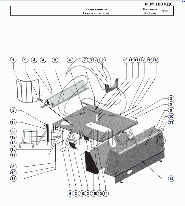 Перечень комплектующих от Рама капота на РСМ-100 (Дон-680М)