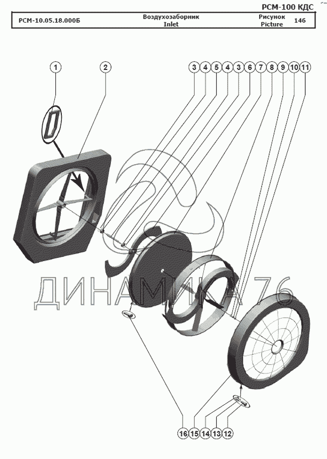 Перечень комплектующих от Воздухозаборник на РСМ-100 (Дон-680М)