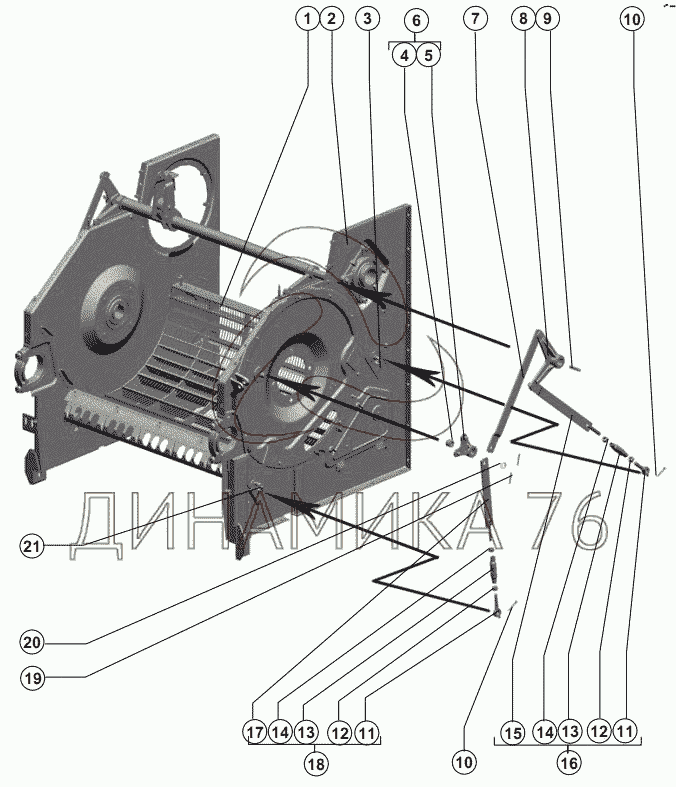Перечень комплектующих от Механизм подъема подбарабанья на РСМ-101 "Вектор"