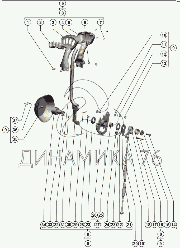 Схемы запчастей предназначены для справочных целей! Мы продаем не все запчасти от Рычаг управления движением на РСМ-101 "Вектор", представленные в этом списке.