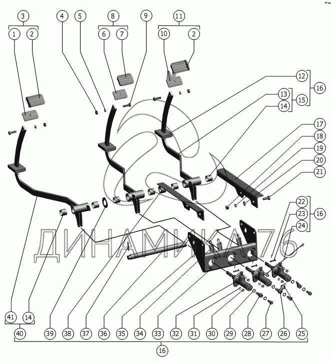 Схемы запчастей предназначены для справочных целей! Мы продаем не все запчасти от Блок педалей на РСМ-101 "Вектор" (вариант), представленные в этом списке.