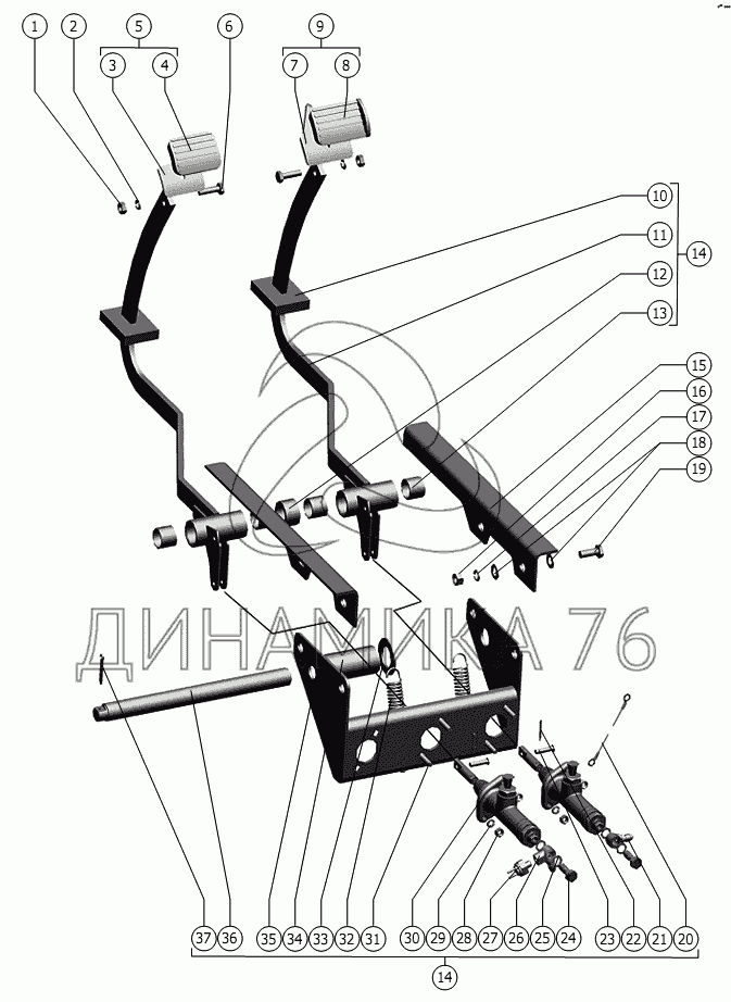 Схемы запчастей предназначены для справочных целей! Мы продаем не все запчасти от Блок педалей на РСМ-101 "Вектор" (вариант), представленные в этом списке.