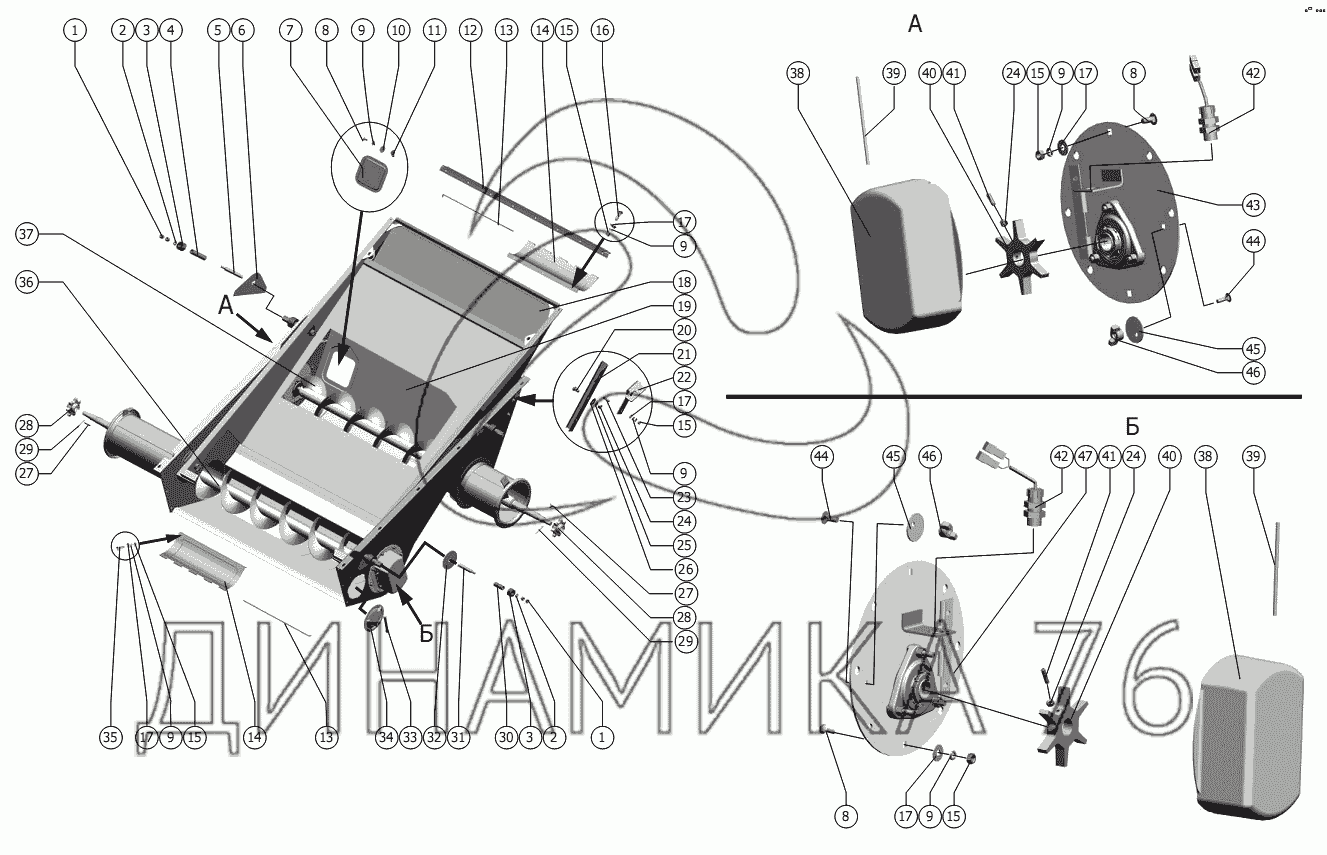 Перечень комплектующих от Блок шнеков на РСМ-101 "Вектор" (вариант)