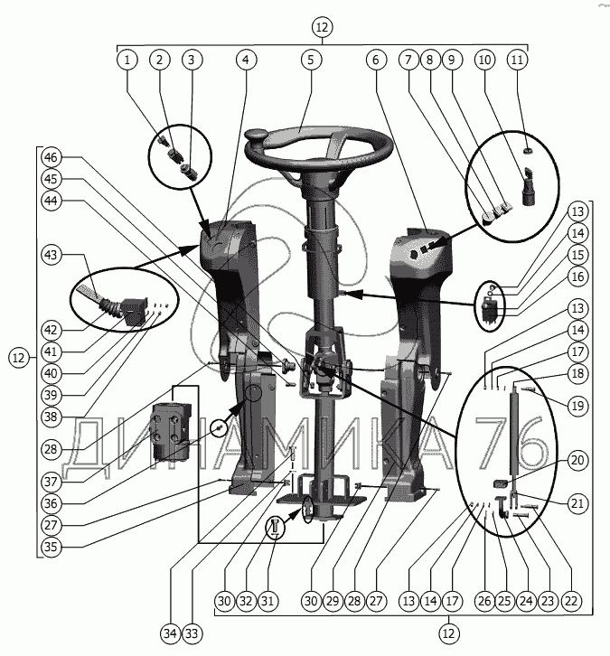 Перечень комплектующих от Колонка рулевая на РСМ-101 "Вектор" (вариант)