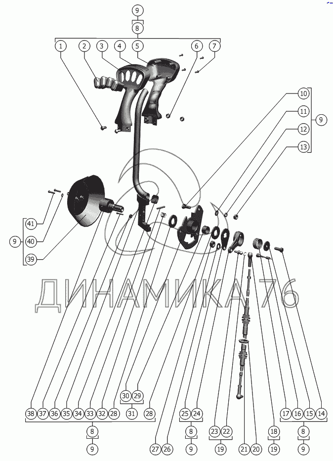Перечень комплектующих от Рычаг управления движением на РСМ-101 "Вектор" (вариант)