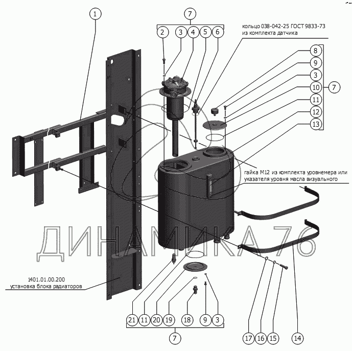 Перечень комплектующих от Установка гидробака на РСМ-1401