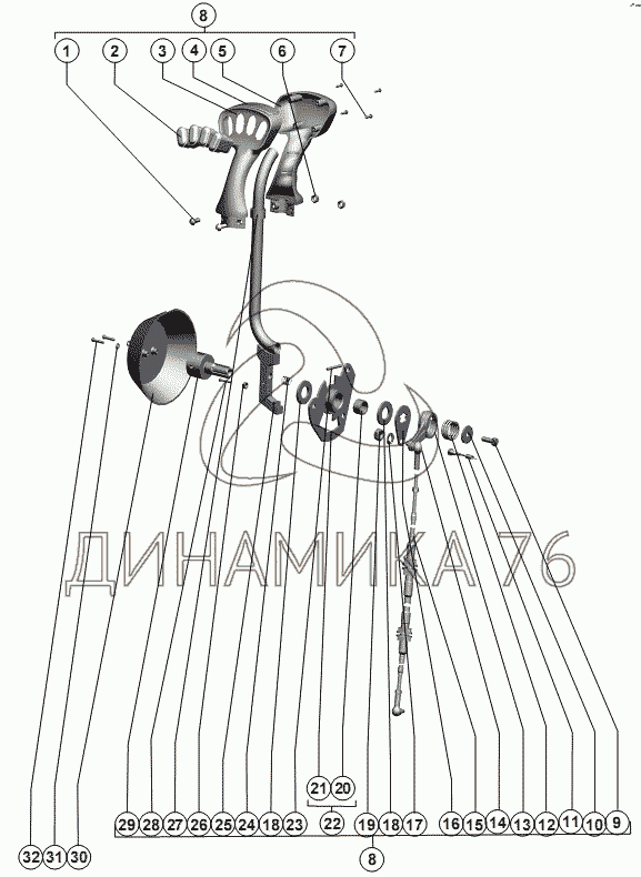 Перечень комплектующих от Рычаг управления движением на РСМ-142 "Acros"