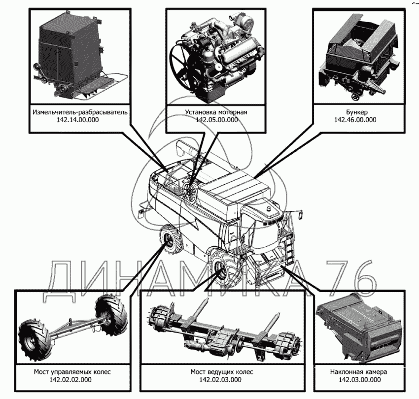 Перечень комплектующих от Схема деления комбайна на составные части на РСМ-142 "Acros"