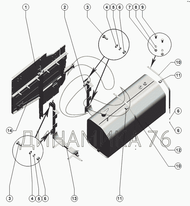 Схемы запчастей предназначены для справочных целей! Мы продаем не все запчасти от Установка бака топливного на РСМ-142 "Acros", представленные в этом списке.