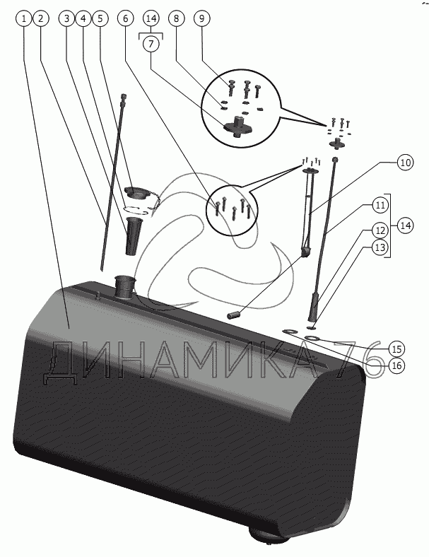 Перечень комплектующих от Бак топливный на РСМ-142 "Acros" вариант