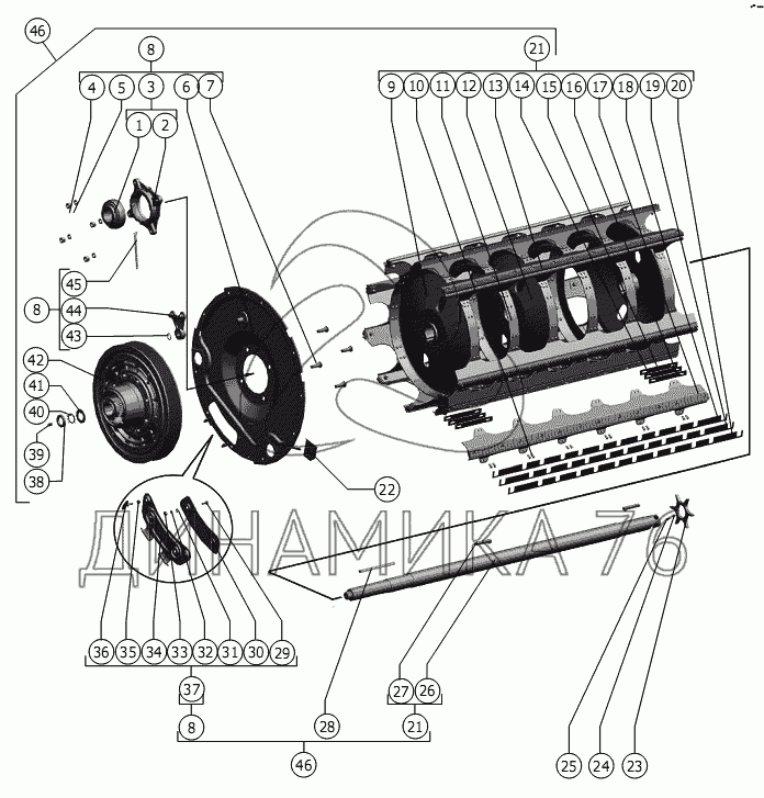 Перечень комплектующих от Барабан молотильный на РСМ-142 "Acros" вариант
