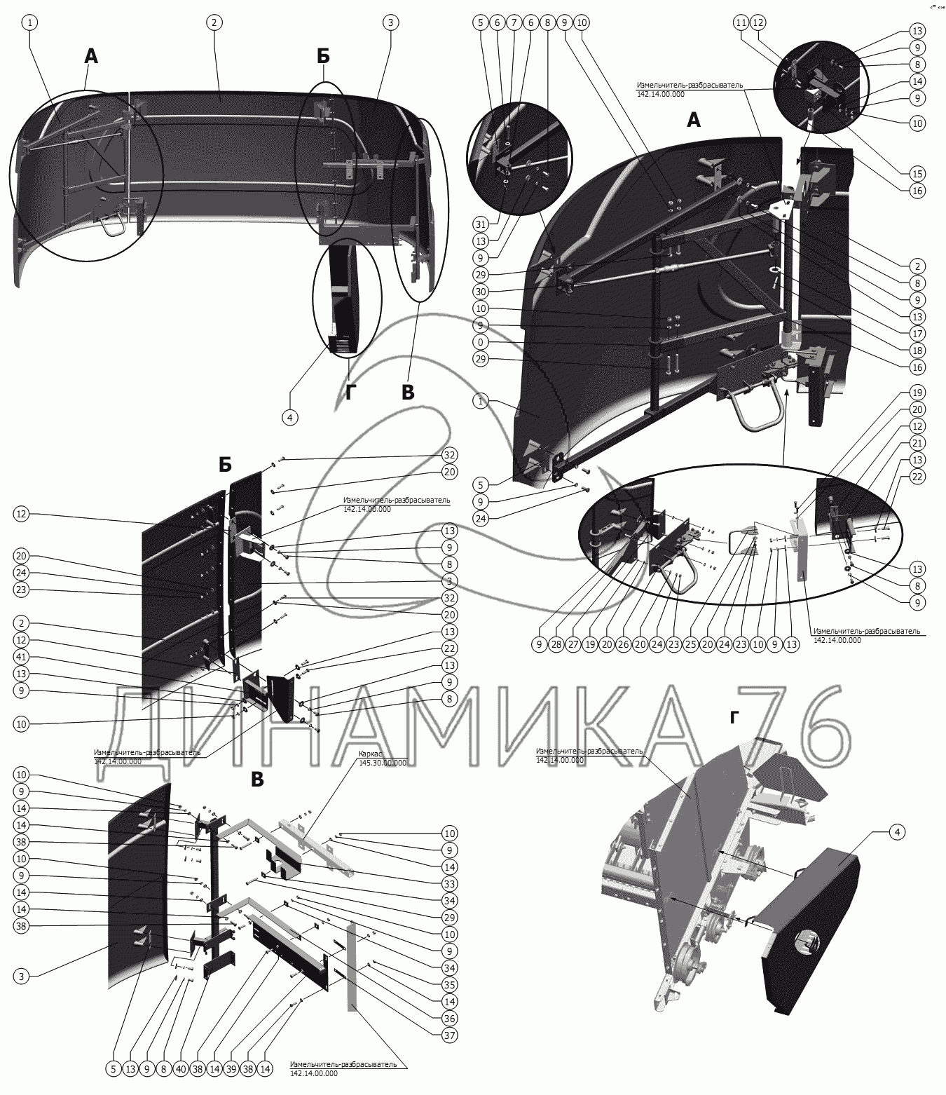 Перечень комплектующих от Капоты (задняя часть) на РСМ-142 "Acros" вариант