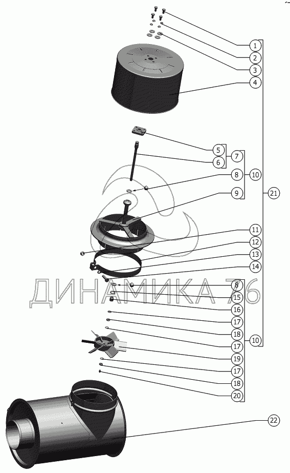 Перечень комплектующих от Предочиститель инерционный на РСМ-142 "Acros" вариант