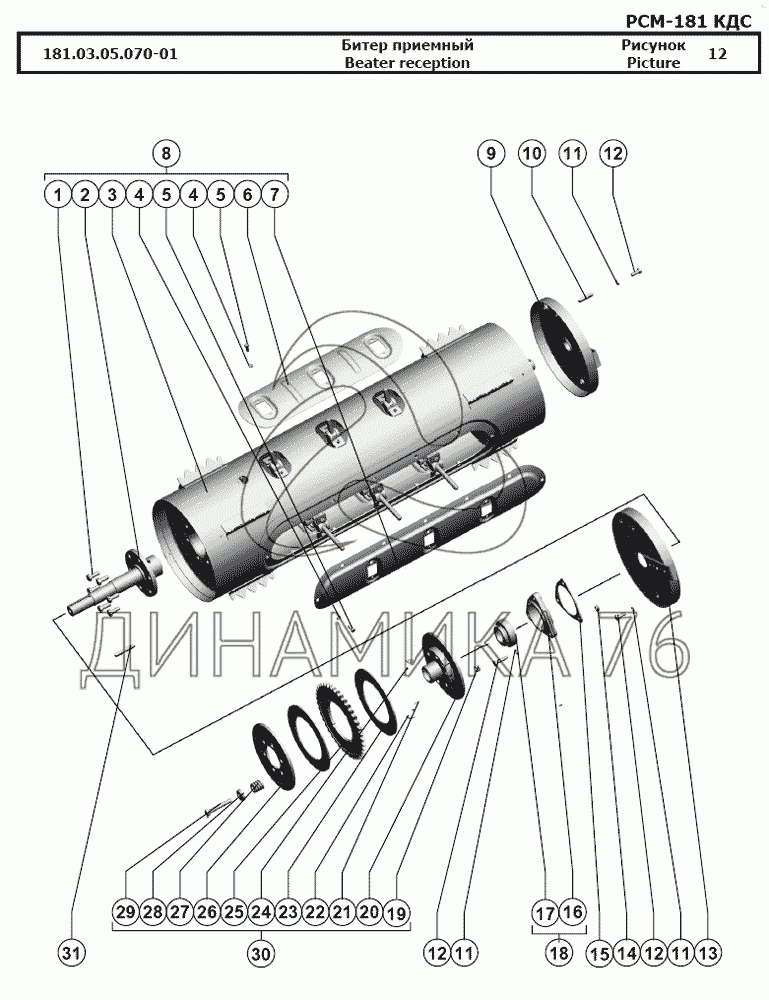 Схемы запчастей предназначены для справочных целей! Мы продаем не все запчасти от Битер приемный на РСМ-181 "Torum-740", представленные в этом списке.