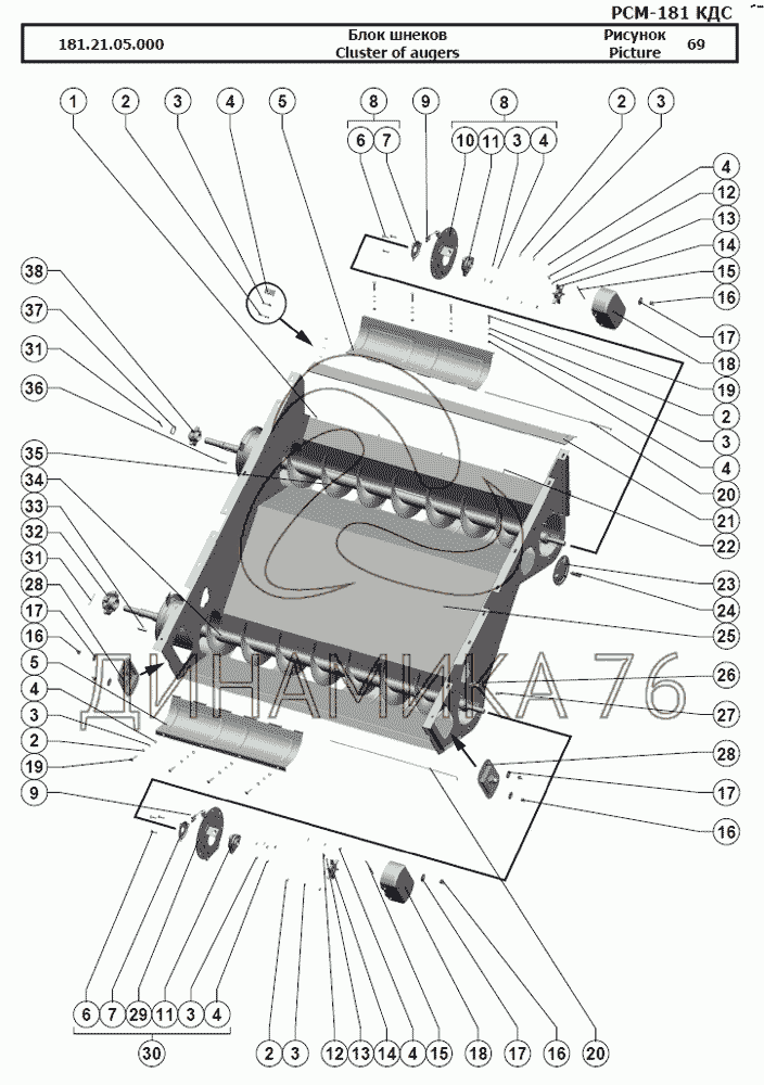 Перечень комплектующих от Блок шнеков на РСМ-181 "Torum-740"