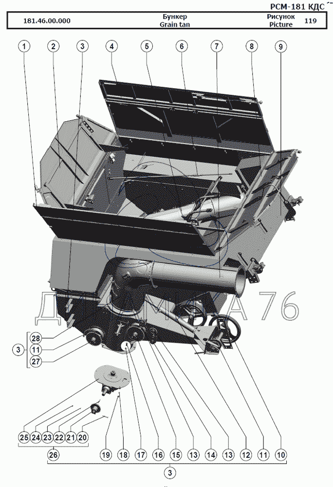 Схемы запчастей предназначены для справочных целей! Мы продаем не все запчасти от Бункер на РСМ-181 "Torum-740", представленные в этом списке.