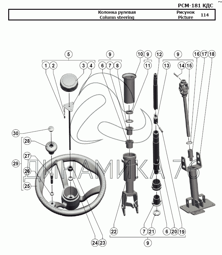 Перечень комплектующих от Колонка рулевая на РСМ-181 "Torum-740"
