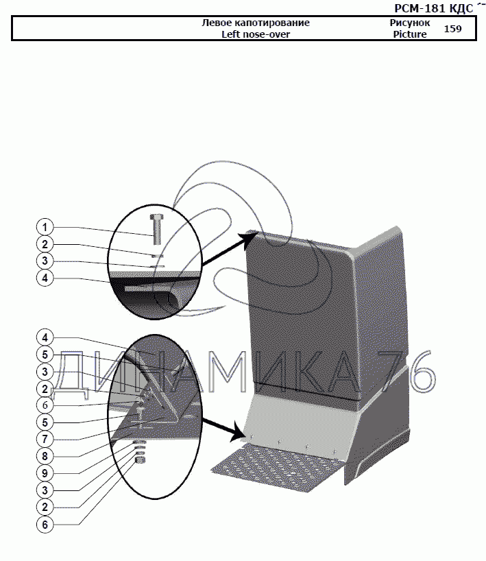 Перечень комплектующих от Левое капотирование на РСМ-181 "Torum-740"