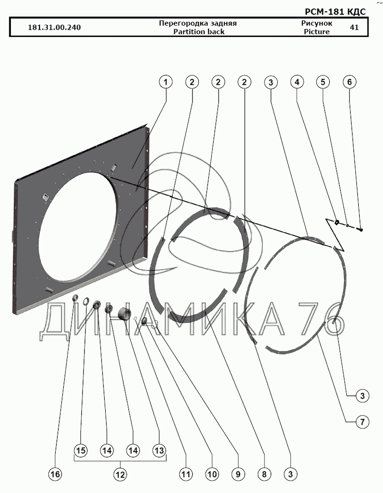 Перечень комплектующих от Перегородка задняя на РСМ-181 "Torum-740"